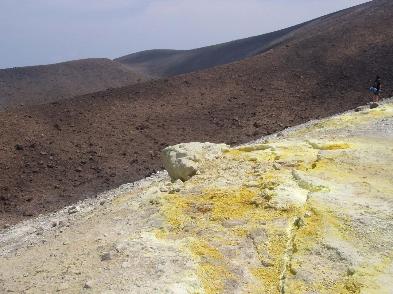 vyhaslému kráteru VULCANELLO (nižší sopka) se třemi malými krátery,