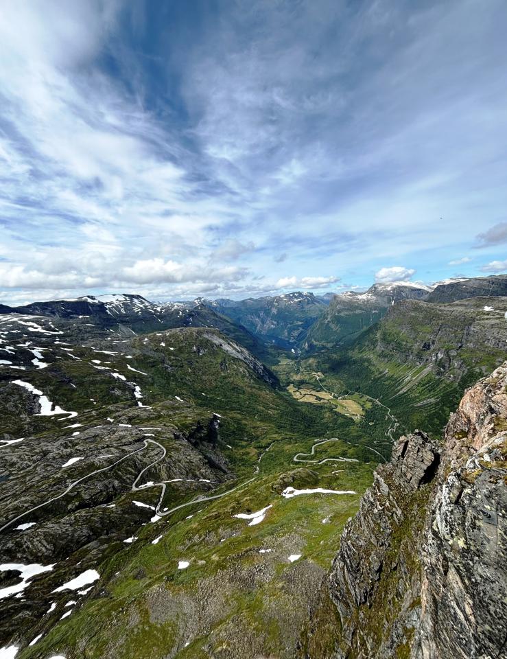 Dnes a zítra budeme cestovat ve fjordech, hluboce zařezaných údolích naplněných ledovci, řekami, jezery, a hlavně mořskou vodou. Pro tuto jedinečnost jsou norské fjordy součástí světového přírodního dědictví UNESCO. Silnice sem nejprve klesá podél peřejí a vodopádů na divoké řece Rauma. Pak se ocitneme v hlubokém údolí Romsdalen - nejen, že se sem slunce po celou zimu nedostane, ale je tu i nejvyšší kolmá stěna Evropy - Trollveggen (Trolí stěna). Úchvatné zážitky nás pak čekají při stoupání 11 zatáčkami po proslulé silnici Trollstigen. Tato "trolí cesta" vede až do horského sedla, ležícího v nadmořské výšce 900 m. Během odpoledne nás ještě čeká vyhlídková plavba po fjordu Geirangerfjord (UNESCO), mj. kolem vodopádů Sedm sester, která je v ceně zájezdu. V Geirangeru si také můžete nakoupit suvenýry. Pokud nám bude přát počasí, vyjedeme od fjordu desítkami serpentin až na vyhlídku na hoře Dalsnibba (téměř 1 500 m n. m.). Po příjezdu na další hotel večeře (je v ceně zájezdu).