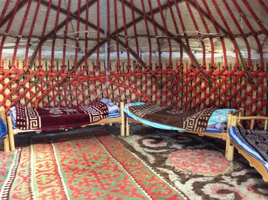 jurtách (ubytování po 4-5 osobách v každé jurtě, soc. zařízení