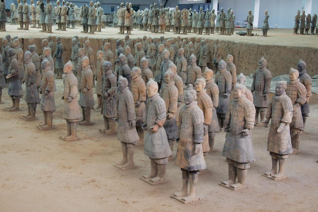 Po snídani výlet k jedné z největších turistických atrakcí celé Číny - Terakotové armádě - hliněné armádě císaře Čchin Š'chuang-tiho, významné osobnosti v čínských dějinách. Tento císař sjednotil Čínu v jednu silnou významnou říši. Hliněná armáda byla zcela náhodou objevena v roce 1974 místními rolníky. Více než 6.000 ozbrojených bojovníků v životní velikosti je rozestavěno v bojovém šiku. Celá armáda byla součástí posmrtné výbavy zemřelého panovníka. Oběd. Odpoledne následuje prohlídka města - navštívíte areál Velké pagody divoké husy ze 4. století, prohlédnete si městské opevnění z raného období dynastie Ming. Návrat do hotelu, večeře, nocleh.