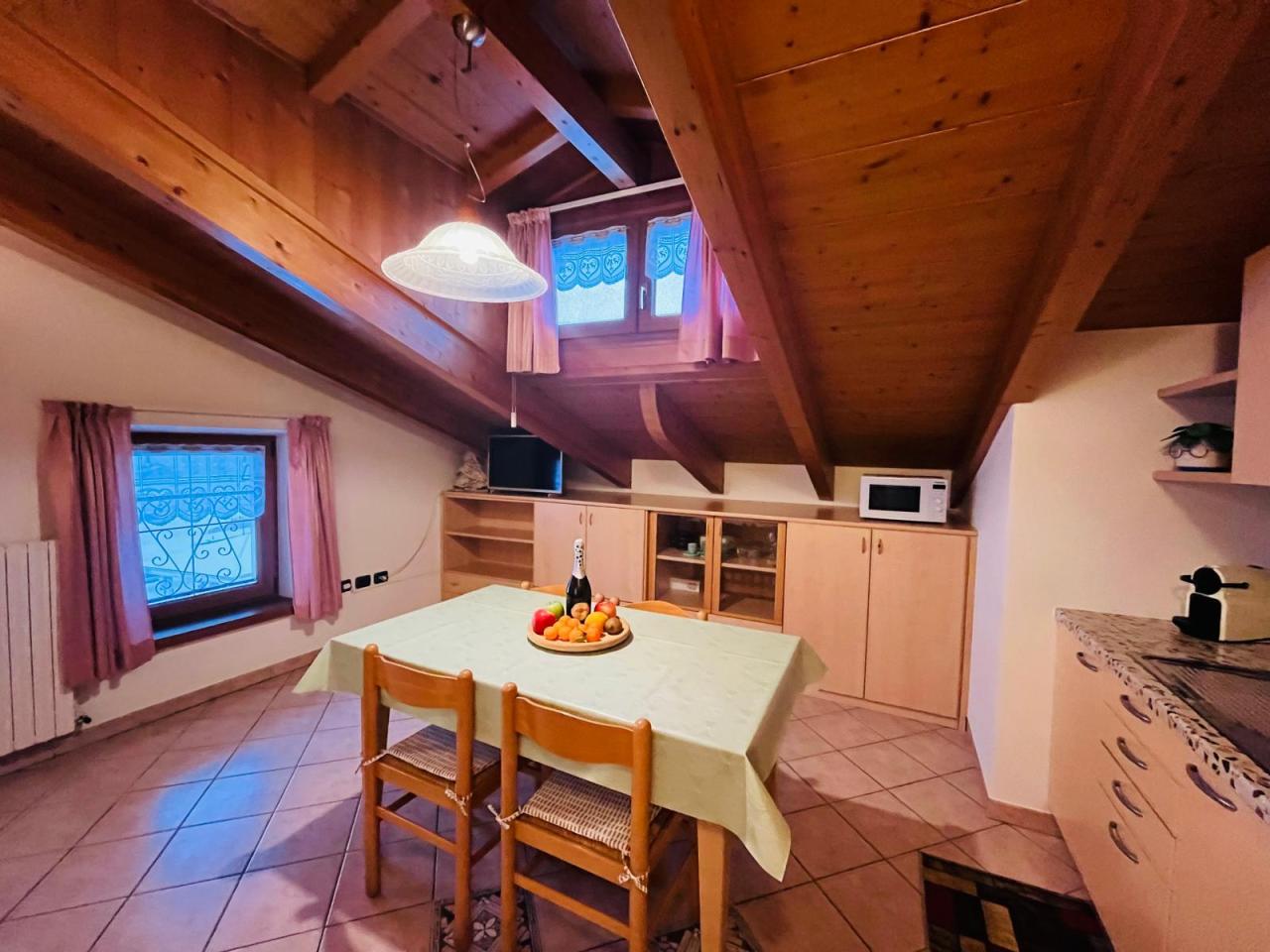 Apartmán je situován na Via Saroch, velmi blízko lanovky Carosello 3000, autobusové zastávky, cukrárny, supermarketu a restaurací. Vybavení a služby: vyhřívaná úschovna lyží, bezplatné venkovní parkování, garáž (na vyžádání, za poplatek), domácí mazlíčci povoleni (na vyžádání, za poplatek), wi-fi připojení Ubytování: TRILO 4 Alina - 60 m2 - apartmán ve 2. patře, složený ze 2 dvoulůžkových ložnic, obývacího pokoje s francouzskou rozkládací pohovkou, kuchyňského koutu (trouba, mikrovlnná trouba, elektrický sporák, kávovar, moka, toustovač, varná konvice, myčka nádobí), smart TV (Netflix), koupelna se sprchou, fénem, ​​pračkou, Wi-Fi, ručníky v ceně Vzdálenosti: 1,5 km od pěší zóny, 150 m od nejbližšího vleku, 100 m od zastávky skibusu, 100 m od supermarketu, 250 od restaurace