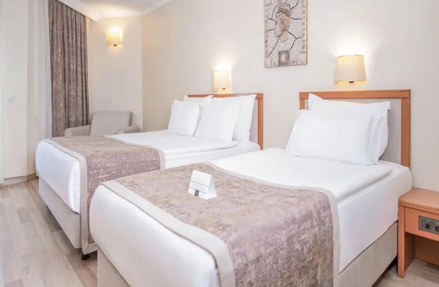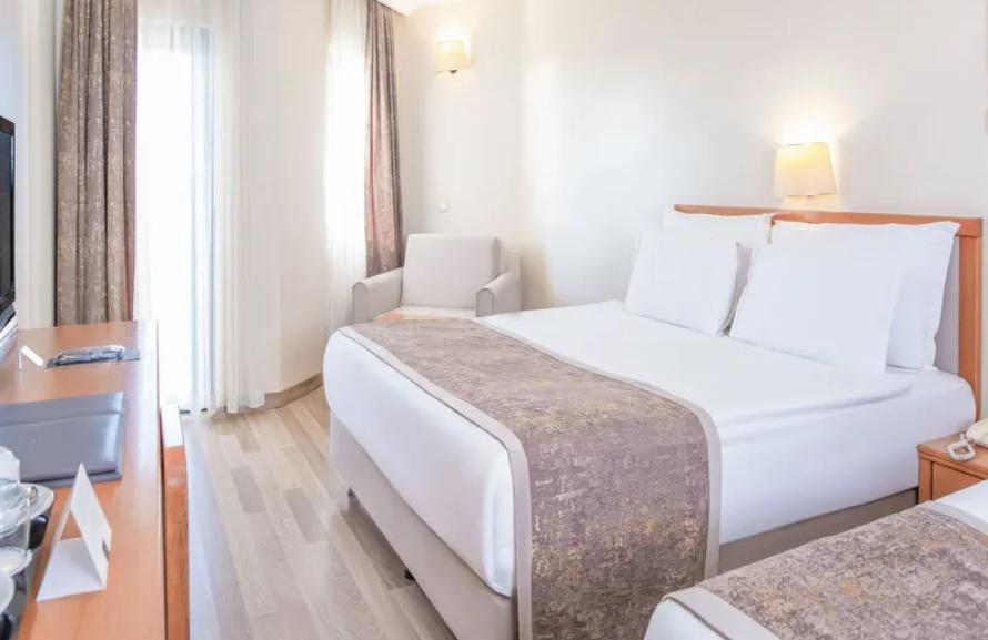 • jsou vybaveny vlastním příslušenstvím (koupelna/toaleta, fén), klimatizací, SAT/TV, telefonem, WiFi, minibarem (denně doplňován nealko nápoji a pivem), setem na přípravu kávy/čaje, trezorem (zdarma) a balkonem Za příplatek možnost stejně vybavených pokojů s výhledem na moře nebo s bočním výhledem na moře. Za příplatek a na vyžádání rodinné pokoje s maximální možnou obsazeností 3 dospělé osoby a dítě do 11,99let. (1 místnost)